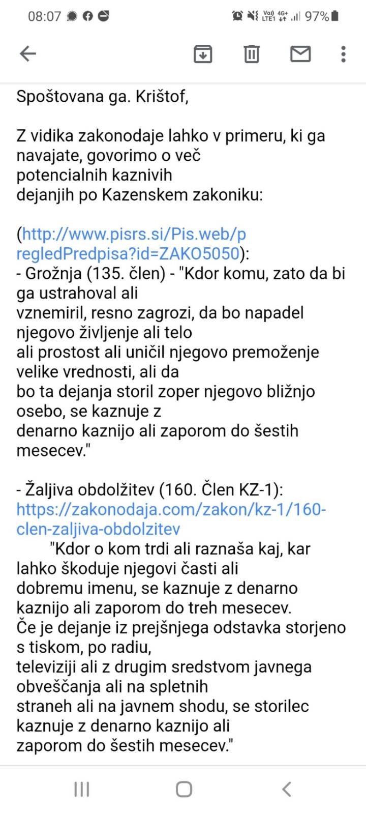 Je g. Požar želel na ta način Dejanu povedati, da ga čaka podobna usoda, če bo nadaljeval s svojim bojem? Sta to želela povedati tudi Jernej Vrtovec in Janez Janša, ki sta objavo Retwittala in Bojanu izkazala podporo?